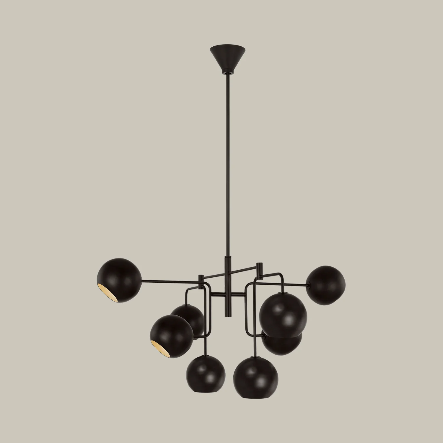 The Chaumont collection reinterprets the classic globe shape into multi-tiered designs inspired by both the mobiles of Calder and classic French mid-century forms. The multi-directional shades suggest movement while providing ample lighting in any space and a dramatic Aged Iron finish which will patina beautifully over time.