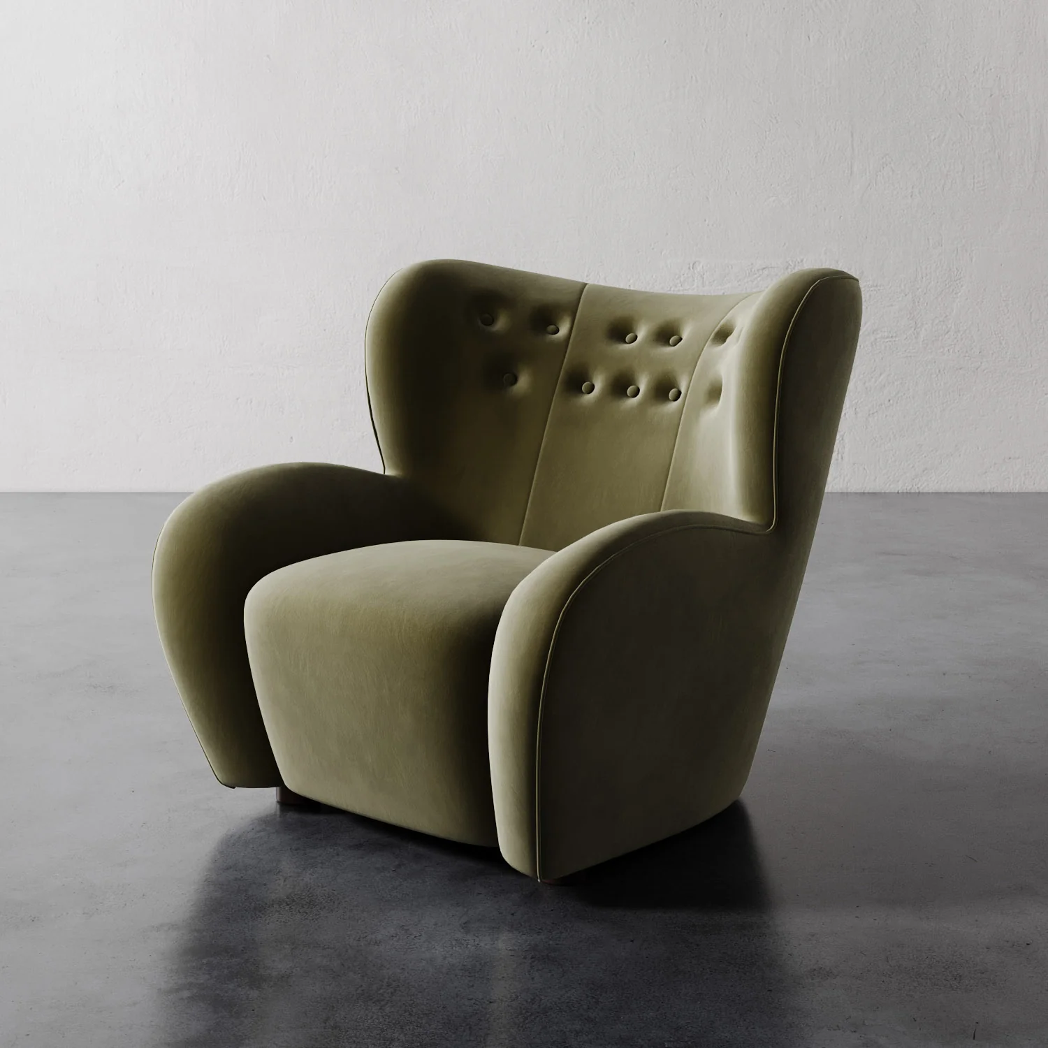 The Mondaine Lounge Chair embodies our devotion to preserving Scandinavian design history, honoring the seating revolution that began with visual drama and intimate solitude. Crafted by skilled artisans, each piece celebrates Danish modern traditions with solid hardwood legs and hand-tailored winged side construction.